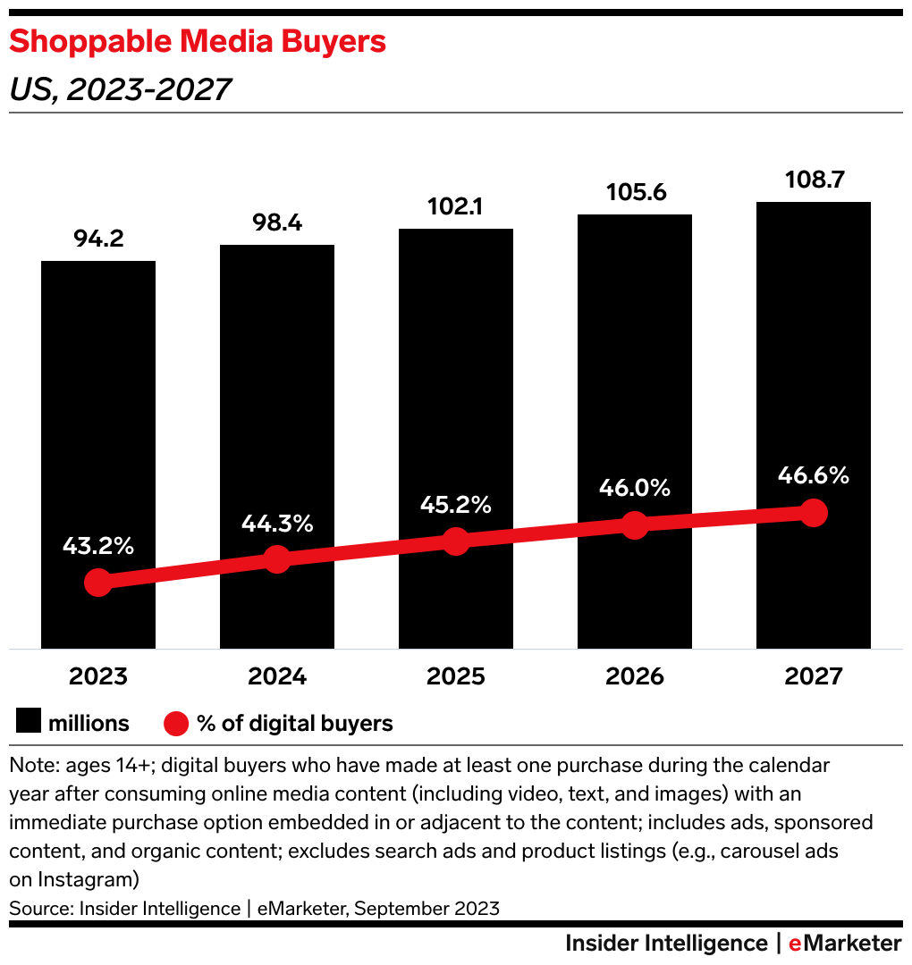 Media is increasingly becoming more and more stoppable. No longer a novelty, it has seamlessly integrated and slipped into our DMs and chat bots to engage our scroll addled brain by now. In 2024, nearly half of US digital buyers are projected to purchase directly from the this kind of content, where influencers and brands are offering immediate buying options from the content they create: a trend that consumers are enthusiastically embracing.